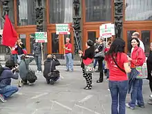 El 18 de mayo de 2010, la fachada frontal del edificio, hecha de una rara tonalita verde, fue severamente dañada por estudiantes que arrojaron piedras de granito removidas de un pavimento cercano en la entrada principal del edificio. El incidente ocurrió durante una gran protesta estudiantil contra la ley propuesta sobre la introducción de trabajos precarios que frenarían el trabajo de los estudiantes y los cambios en la política de becas.[11] Las reparaciones del edificio se estimaron en 27 000 euros.[12]