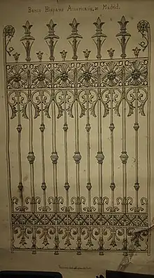 Las rejas de las ventanas de la planta baja del edificio de Banco Hispano Americano de Plaza de Canalejas fueron diseñadas por Manuel Negrete González, según foto del documento, firmado por su autor.