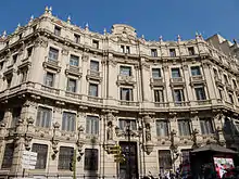 El edificio del Banco Hispano Americano, situado en la plaza de Canalejas de Madrid, fue la sede histórica del Banco Hispano Americano. Ocupa una parcela con una superficie aproximada de 1800 metros cuadrados. La superficie construida es de unos 12 000 metros cuadrados.[2] Tras varios procesos de fusiones bancarias, acabó en manos del Banco Santander, que lo vendió en 2012. Declarado bien de interés cultural en 1999, su estatus (y con ello el grado de protección) se vieron circunscritos a la fachada y a la primera crujía en 2013. El edificio, así como otros cinco edificios colindantes (entre los que se encuentra el antiguo edificio de La Equitativa), también pertenecientes hasta 2012 al Banco Santander, están siendo reformados y modificados para establecer viviendas y un hotel de lujo, así como un centro comercial, en el marco de la denominada operación Canalejas. La reforma incluye derribos, que comenzaron en septiembre de 2014.
