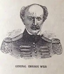 Éste fue un puesto crucial para Pérez, ya que el General Weir era una figura militar de larga trayectoria en América del Sur. Había formado parte de la Legión Británica, que luchó al lado de Simón Bolívar en las guerras de independencia de Hispanoamérica, participando en grandes batallas de la gesta.[11] Pérez fue su ayudante de campo durante la guerra civil colombiana, una de las experiencias más importantes de su formación militar. Weir fue además su mentor y sentó las bases de su futura vida militar, donde destacaría por su heroísmo y valentía. En palabras del escritor Atenógenes Olivares, “Pérez era ya un hombre muy despierto, muy serio en su conducta y muy inteligente. El General Weir lo llegó a estimar en alto grado.“ [9][1]