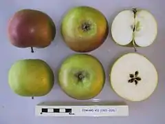 ![]() La variedad de manzana 'Edward VII' con secciones cruzadas. | ||
