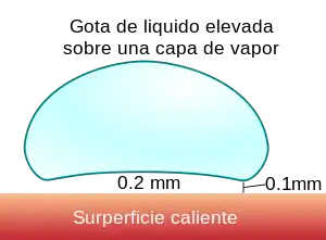 Cuando sobre una base metálica a alta temperatura se coloca una gota de un líquido volátil (agua, alcohol, etc.), la gota no se evapora instantáneamente sino que se mueve erráticamente sobre la superficie durante cierto tiempo, hasta que finalmente desaparece. Pero tarda más tiempo en desaparecer que a una temperatura inferior.