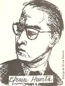 Efraín Huerta (Silao, Guanajuato, 18 de junio de 1914-Ciudad de México, 3 de febrero de 1982)[1][2] fue un poeta y periodista mexicano. Se dedicó a escribir poesía desde una edad temprana, aunque inicialmente pretendía recibirse como abogado; no obstante, cuando se publicó su primer libro de poesía, se dedicó a la escritura completamente. Como poeta, Huerta publicó con frecuencia desde 1930 hasta 1982. Como periodista colaboró con alrededor de cuarenta periódicos y revistas, algunos bajo su nombre y otros bajo sus seudónimos. Fue políticamente activo, y partidario de la República Española durante la Segunda Guerra Mundial. Fue fundador de la revista Taller. Toda su vida publicó aforismos y pequeñas líneas humorísticas y, en los años sesenta, creó una nueva forma poética a la que bautizó como "poemínimo”.