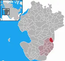 Se encuentra ubicado al oeste del estado, cerca del mar del Norte y a poca distancia al norte del canal de Kiel.