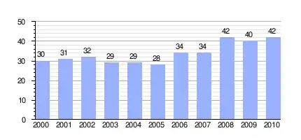 | Gráfica de evolución demográfica de Eguaras entre 2000 y 2010 |