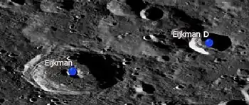 Por convención estos elementos son identificados en los mapas lunares poniendo la letra en el lado del punto medio del cráter que está más cerca de Eijkman.