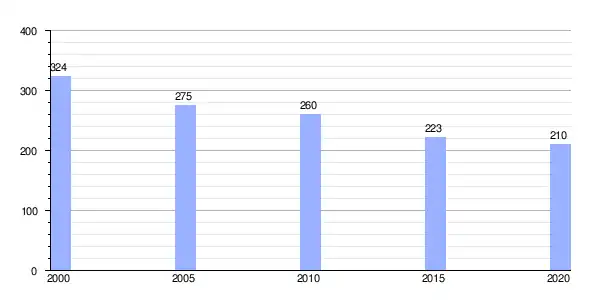 | Gráfica de evolución demográfica de Eiré entre 2000 y 2020 |