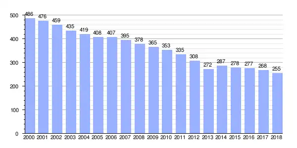 | Gráfica de evolución demográfica de Eirón[2] entre 2000 y 2018 |