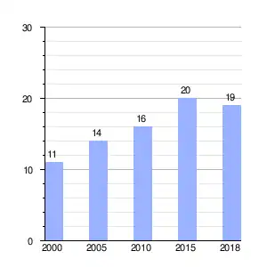 | Gráfica de evolución demográfica de Atrio[2] entre 2000 y 2018 |