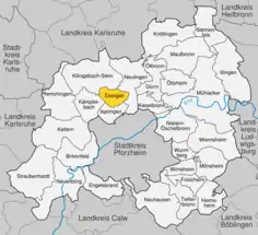 Se encuentra ubicado en el centro del estado, en la región de Karlsruhe, en la parte septentrional de las montañas de la Selva Negra, cerca de la orilla del río Enz —un afluente izquierdo del río Neckar.