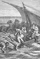 Al fin, las llamas llegan hasta la cubierta del barco, y el capitán Huntly, un hombre débil, abandona el mando de la nave. En estas circunstancias, el segundo, Robert Kurtis, asume el control del Chancellor. Pronto, el comerciante Ruby, presa de una locura al culparse del peligro en que había sometido a todos al transportar clandestinamente «picrato de potasa», se arroja ante el fuego que consume el barco. Es el primero en morir. Con mucha suerte, el Chancellor encalla en un islote de origen volcánico similar al de la famosa gruta de Fingal en Escocia. Es en este arrecife no señalado en las cartas marinas, que los tripulantes consiguen apagar el incendio con la inundación parcial del barco. Más adelante, y luego de varios días de reparación, el Chancellor vuelve a navegar en busca de la tierra más cercana. Después de unos días en alta mar, el barco comienza a llenarse de agua nuevamente y los sufridos ocupantes entran otra vez en desesperación; y antes que termine de hundirse, el capitán Huntly junto al señor Kear y tres marineros más «escapan» a bordo de la única ballenera disponible. Los veintidós ocupantes que quedan se ven obligados a construir una balsa y lanzarse a la aventura. Pero antes de emprender el viaje mueren la señora Kear y otros tres marineros. Serán entonces dieciocho los que deberán someterse al canibalismo una vez que las provisiones escasean.