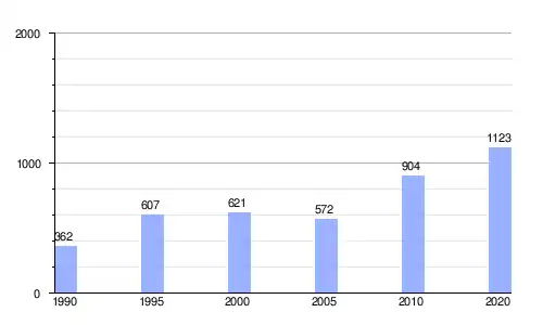 | Gráfica de evolución demográfica de El Alambrado entre 1990 y 2020 |