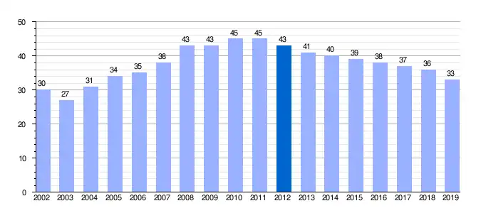 | Gráfica de evolución demográfica de El Barrichuelo entre 2002 y 2019 |