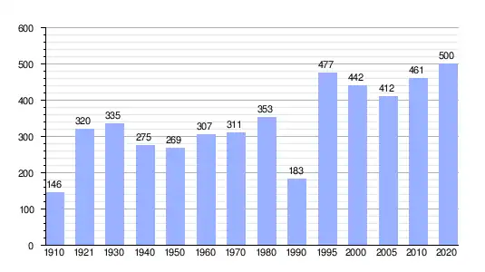 | Gráfica de evolución demográfica de El Barrio entre 1910 y 2020 |