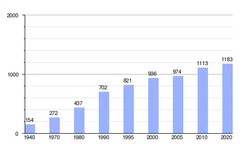 | Gráfica de evolución demográfica de El Bellote (Miguel de la Madrid) entre 1940 y 2020 |