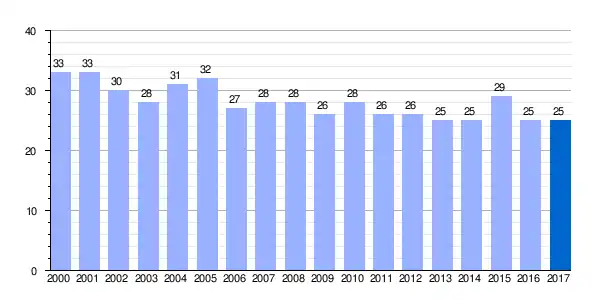 | Gráfica de evolución demográfica de El Campillar[1] entre 2000 y 2017 |