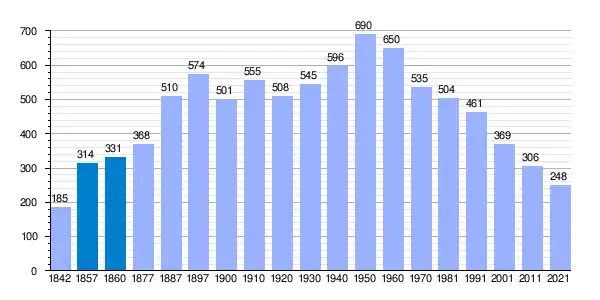 | Gráfica de evolución demográfica de El Campo de Peñaranda[5] entre 1842 y 2021 |