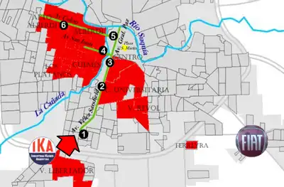 A partir de esos dos grandes polos, en el sur y el sudeste de la ciudad, se formaron densas concentraciones obreras cercanas a las fábricas. En el sudoeste, cerca de la planta de IKA-Renault, se formó Villa El Libertador. En el sur, cerca del Camino San Carlos había fábricas de vidrio, de bulones, la autopartista Transax y los talleres de la Empresa Provincial de Energía Eléctrica (EPEC), vinculados con los centros vecinales de los barrios Villa Revol y San Carlos.[10] En el sureste, más allá del camino de circunvalación (hoy llamado Agustín Tosco), "la zona de Ferreyra aglutinaba los barrios de Ituzaingó, Avellaneda, San Lorenzo, Deán Funes y Primero de Mayo; en cuyo corazón estaba la planta de Fiat (Concord, Materfer y Grandes Motores Diesel) y los pequeños y medianos talleres de alrededor como Luján Hnos., e incluso otras fábricas como la planta de Motores Diesel Livianos-Perkins, la autopartista Thompson Ramco, las plantas de caucho Rubber y Armando López, las metalúrgicas Tubos Transelectric y Rubol y la láctea SanCor. Esta zona tuvo una importante relación con barrio Colón y San Vicente, ubicados en su trayectoria hacia el centro de la ciudad, territorio de talleres y fábricas de calzado cuya planta paradigmática en San Vicente -por cantidad e intensidad de luchas- fue la fábrica de calzado Lucas Trejo, recordada además porque la mayoría de sus delegadas eran mujeres."[10]