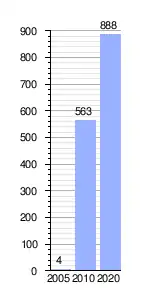 Gráfica de evolución demográfica de El Crestón entre 2005 y 2020