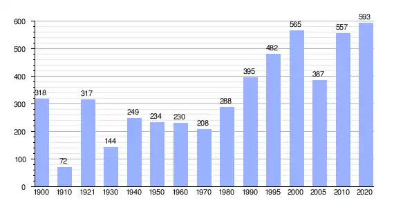 En 2020 registró una población de 593 personas, lo que corresponde al 3.09 % de la población municipal.[12] De los cuales 310 son hombres y 328 son mujeres.[12] Tiene 149 viviendas particulares habitadas.[12]