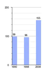 | Gráfica de evolución demográfica de El Foyel entre 1990 y 2008 |