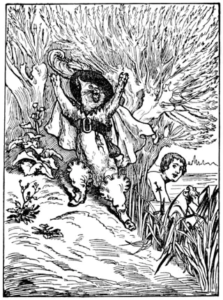 ![]() Escena "¡El marqués de Carabás se ahoga!", ilustración de Los cuentos de la madre oca de Charles Perrault; traducido y editado por Charles Welsh, 1901. | ||