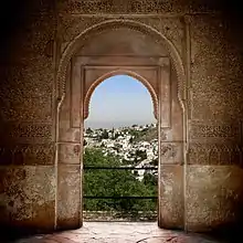 El Generalife es la villa con jardines habitada por los reyes nazaríes de Granada como lugar de descanso, situado en la ciudad española de Granada, en Andalucía. Fue concebida como villa rural, donde jardines ornamentales, huertos y arquitectura se integraban, en las cercanías de la Alhambra. Ese huerto real era común en las cortes hispano-árabes y es fruto de las reformas y añadidos que le aportaron los diferentes sultanes. Por sus elementos decorativos más antiguos, el palacio debió de construirse a finales del siglo XIII por el segundo sultán de la dinastía nazarí, Muhammad II (1273-1302).[2] Fue declarado, junto con la Alhambra, Patrimonio de la Humanidad por la Unesco en 1984.[3]