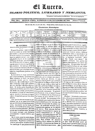 ![]() Portada del periódico del 10 de noviembre de 1830 | ||