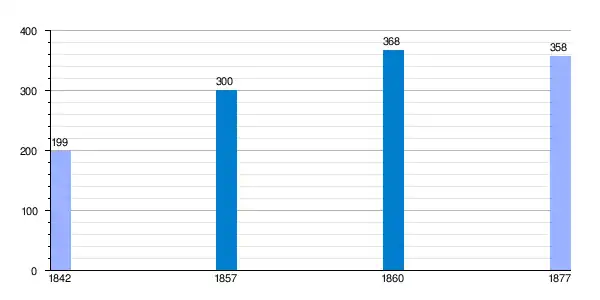 | Gráfica de evolución demográfica de Mármol[5] entre 1842 y 1877 |