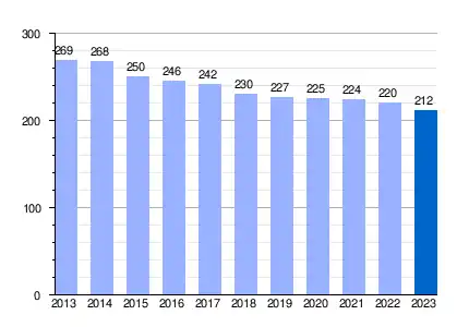 | Gráfica de evolución demográfica de El Margen entre 2013 y 2023 |