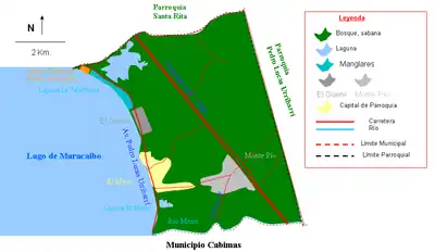 Se encuentra en la Av Pedro Lucas Urribarrí entre las poblaciones de Cabimas al sur (Municipio Cabimas) y Puerto Escondido al norte Parroquia Santa Rita Municipio Santa Rita (ciénaga la telefónica), el lago de Maracaibo al oeste y una sabana al este.