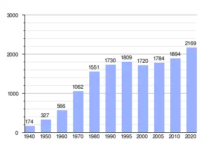 En 2020 registró una población de 2169 personas, lo que corresponde al 5.98 % de la población municipal.[12] De los cuales 1028 son hombres y 1141 son mujeres.[12] Tiene 596 viviendas particulares habitadas.[12]