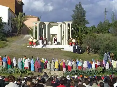 4. Escenario natural. El Calvario es una amplia explanada con cabida para más de seis mil personas sentadas. Con esto se pretende que el espectador se ambiente y se sumerja lo más posible en la época que se está representando.