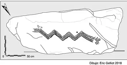 Los motivos figurativos del sitio incluyen rostros y cabezas así como seres antropomorfos incluso personajes con indumentaria o decoración en composición con otras imágenes. Aunque algunos seres antropomorfos aparecen en una posición dinámica, la interactuación de las figuras es muy limitada. Se aprecian también zoomorfos como serpientes (fig. 3), dantas, lagartos o cocodrilos, entre otros y no se descarta la presencia de motivos fitomorfos.