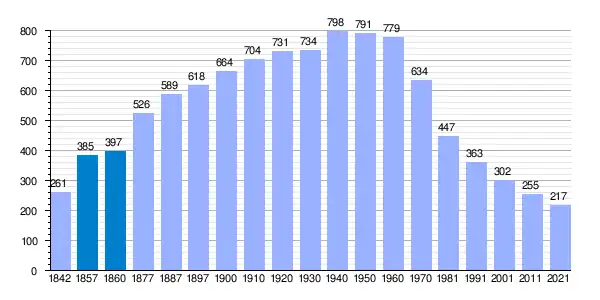| Gráfica de evolución demográfica de El Pedroso de la Armuña[7] entre 1842 y 2021 |