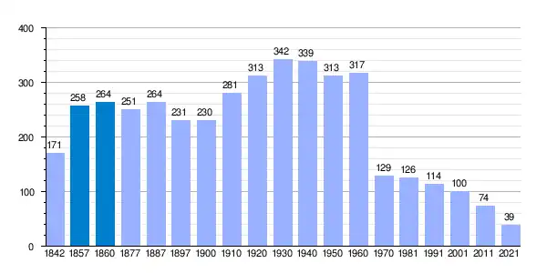| Gráfica de evolución demográfica de El Pozuelo[4] entre 1842 y 2021 |