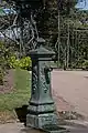 En el centro se encuentra una fuente de bronce a la cual rodean 20 columnas. Allí se pueden ver diferentes especies de rosales antiguos y exóticos: