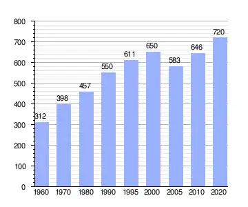 En 2020 registró una población de 720 personas, lo que corresponde al 0.73 % de la población municipal.[1][7] De los cuales 335 son hombres y 385 son mujeres.[1][7]