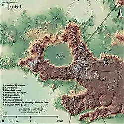 El Tintal es un sitio arqueológico maya ubicado en el departamento de Petén en Guatemala, y fue una ciudad de gran tamaño e importancia histórica en las tierras bajas mayas, con una ocupación larga que abarcó casi dos milenios, desde el periodo Preclásico Medio (1000 – 350 a. C.) hasta el Clásico Terminal (830 – 950 d. C.).[1] El asentamiento conocido cubre un área de 25 km², donde se ha determinado la existencia de al menos 2,564 edificaciones,[2] agrupadas en varios conjuntos arquitectónicos,[1] y entre las que destacan tres grandes pirámides monumentales cuya altura supera la del dosel de la selva, y seis calzadas peatonales o sacbés,[2] uno de los cuales, de 23 kilómetros de largo,[3] conecta directamente a El Tintal con El Mirador hacia el norte, otro sitio arqueológico maya de gran importancia y monumentalidad.