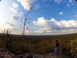 ![]() Vista hacia el norte desde la cima de El Henequén, una de las pirámides monumentales de El Tintal. | ||