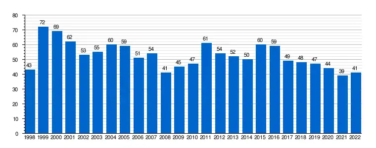 | Gráfica de evolución demográfica de El Vallecillo[6] entre 1998 y 2022 |