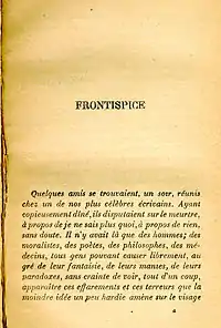La novela tiene tres partes : en la primera parte, "Frontispicio", durante una reunión de intelectuales positivistas, en casa de un escritor académico y anti-dreyfusista, se habla con entera libertad sobre el crimen, como de un instinto natural.
