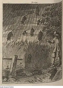 ![]() "Lluvia de ratas", grabado de Erasmus Francisci de 1680. | ||