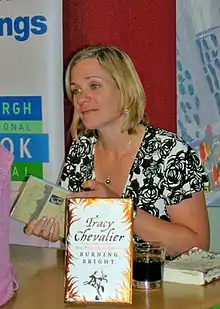 ![]() Tracy Chevalier firmando ejemplares de Burning Bright. | ||
