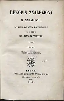El manuscrito encontrado en Zaragoza (en francés original, Manuscrit trouvé à Saragosse) es una novela gótica publicada por Jan Potocki en 1804 y 1805, adaptada al cine por el director polaco Wojciech Has en 1965.