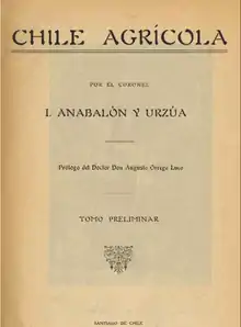 - Anabalón y Urzúa (1922). Chile agrícola. Santiago: Imprenta Moderna.