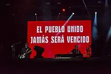 «El pueblo unido jamás será vencido» es una canción de protesta chilena, cuya música fue compuesta por Sergio Ortega Alvarado y el texto escrito en conjunto con la banda Quilapayún.[1] Conocida en el mundo entero, es una de las más famosas canciones de protesta de la historia, y junto con el tema «Venceremos», también de Ortega, una de las más conocidas de la Nueva Canción Chilena.[2] El tema tiene un ritmo de marcha, destacando su estribillo que es un grito o consigna sólo con percusión, lo que facilita su adaptación a cualquier idioma.[2]