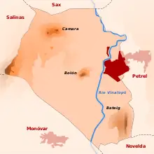 | Suroeste: Monóvar | Sur: Monóvar y Novelda | Sureste: Petrel |