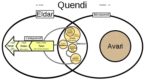 Los Vanyar vivieron en Valinor, los Teleri en Eldamar y los Noldor, a causa del juramento de Fëanor emigraron nuevamente a la Tierra Media.
