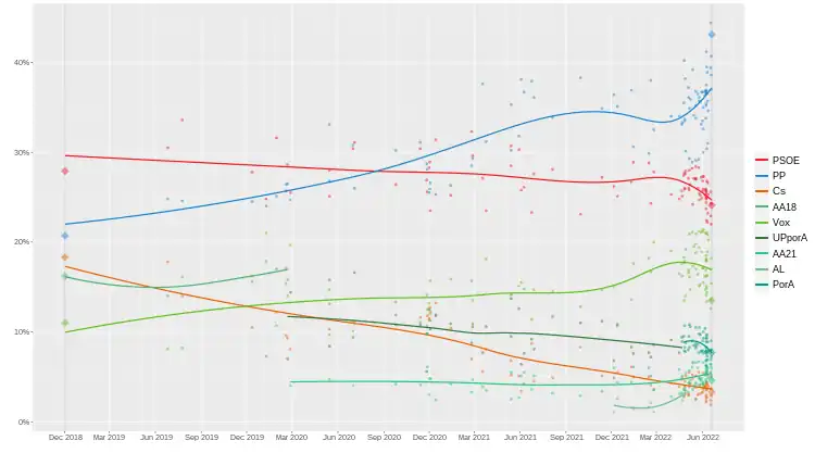 Tras varias semanas de especulaciones acerca del adelanto electoral, el presidente de Andalucía, Juanma Moreno (PP-A), disolvió el parlamento regional de Andalucía el lunes 25 de abril por la "inestabilidad" que suponía la ruptura del pacto de gobierno por parte de Vox, quién rechazó los presupuestos de 2022, así como por la imposibilidad de llegar a acuerdos con el PSOE-A, con Unidas Podemos por Andalucía o con el Grupo Mixto (formado por los diputados de Adelante Andalucía y los ex-diputados de VOX) para aprobar los presupuestos generales de la región y otros proyectos importantes, dejando al gobierno del PP-A y Ciudadanos en minoría, con 47 escaños de los 109 que tiene la cámara andaluza.